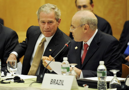 US President George W. Bush met with G7 economic chiefs and officials from the IMF and World Bank and said top industrial nations would work together to solve the crisis. "The benefits will not be realized overnight, but as these actions take effect, they will help restore stability to our markets and confidence to our financial institutions," Bush said. The G7 - the US, Britain, France, Germany, Italy, Japan and Canada - met on Friday and then joined key emerging-market nations for a meeting of the Group of 20 (G20) on Saturday. Emerging economies including China, Brazil, India and South Africa are now feeling the impact of the slump. Bush made a surprise appearance at the G20 where he acknowledged the disruption originated in US mortgage markets but warned everyone must help to resolve it. "It doesn't matter if you're a rich country or a poor country, a developed country or a developing country - we're all in this together. We must work collaboratively," he said. European leaders were scheduled to discuss Sunday how to restore credit availability, with a British initiative to guarantee lending between banks as one of the topics, a source close to the French presidency said. Lagarde sounded a cautious note about the British proposal, saying guarantees of bank-to-bank lending or bank deposits would have to be checked to ensure they do not distort European markets. Britain's rescue plan, launched last week, makes available 50 billion pounds ($85 billion) of taxpayers' money for injection into its banks and, crucially, calls for underwriting interbank lending, which has all but frozen around the globe. Agencies |