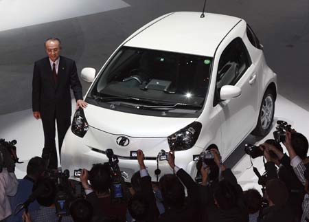 Toyota Motor's iQ, a compact fuel-efficient four-seater car, is displayed at a new-car-release exhibition at the Makuhari Messe convention center near Tokyo, October 15, 2008. [Xinhua]