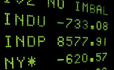The Dow Jones Industrial Average is seen on a board at the New York Stock Exchange at the end of the trading day, October 15, 2008. [Agencies]