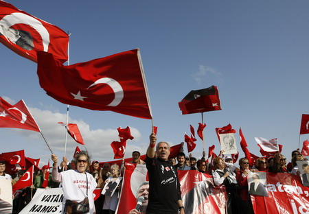A panel of judges adjourned proceedings and resumed with only the 46 jailed suspects and their lawyers present on the opening day. The other 40 suspects in the case are free pending trial. All the defendants are charged with seeking to destabilize Turkey with attacks ahead of a planned coup in 2009. The case has raised concerns about political instability in Turkey, a country that has endured the ouster of four governments by the military since 1960. But the investigation so far has not uncovered alleged involvement by active-duty military officers or other state officials, despite what many Turks believe is a long history of crime by elements of the Turkish state. A new hearing was set for Thursday so the court can consider a demand by defendants that the judges be replaced because of alleged bias, Anatolia news agency reported. Those on trial include a retired general, the leader of a small leftist and nationalist party, a newspaper editor, a best-selling author and a former university dean. They are accused of being part of a nationalist network called Ergenekon, which takes its name from a legendary valley in Central Asia believed to be the ancestral homeland of Turks, and of plotting an armed uprising. The trial amounts to an exploration of the key division in Turkey between a growing Islamic class with political and economic clout and a backlash from secular foes, some of whom have purportedly turned to violence. The conflict eased in July when the Constitutional Court ruled against the closure of the ruling Justice and Development Party on the grounds that it was steering the country toward Islamic rule, but imposed a fine as a warning. The coup plot trial revisits the battle over Turkey's political and social future, with government opponents saying the case is an attempt to cow them with the courts. The government, meanwhile, says it is an opportunity to expose the influence of the "deep state," a shadowy network of alleged extremists with links to state institutions, including the military. The trial is being held at a prison complex in Istanbul's Silivri district on the coast of the Sea of Marmara. The courtroom can accommodate about 280 people, but an accreditation system appeared to have failed and almost double that number tried to enter Monday. "The trial is being held in a courtroom too small and inappropriate for a fair trial," opposition lawmaker Sahin Mengu said outside the court. "This is the Turkish republic's shame." |