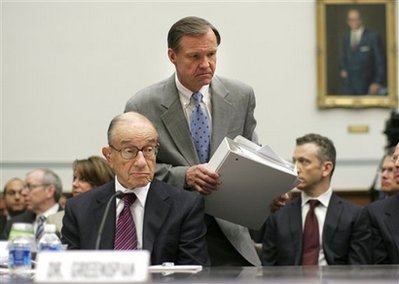 Greenspan, who stepped down in 2006, called the banking and housing chaos a "once-in-a-century credit tsunami" that led to a breakdown in how the free market system functions. And he warned that things would get worse before they get better, with rising unemployment and no stabilization in housing prices for "many months." Gloomy economic reports backed him up. New jobless claims soared to just under 500,000 for last week, and Goldman Sachs, Chrysler and Xerox all said they were cutting thousands more workers. On Wall Street, the Dow Jones industrials bounced erratically all day before finishing up 172 points -- after a two-day drop of nearly 750. The financial crisis even prompted the Republican Greenspan, a staunch believer in free markets, to propose that government consider tougher regulations, including requiring financial firms that package mortgages into securities to keep a portion as a check on quality. He said other regulatory changes should be considered, too, in such areas as fraud. Also looking for solutions, another banking regulator told Congress the government was working on a loan-guarantee plan that could help many homeowners escape foreclosure as part of the $700 billion bailout legislation. That plan is being discussed by the Treasury Department and the Federal Deposit Insurance Corp., said FDIC Chairman Sheila Bair, who is pushing the idea. Greenspan's interrogation by the House Oversight Committee was a far cry from his 18 1/2 years as Fed chairman, when he presided over the longest economic boom in the country's history. He was viewed as a free-market icon on Wall Street and held in respect bordering on awe by most members of Congress. Not now. At an often contentious four-hour hearing, Greenspan, former Treasury Secretary John Snow and Securities and Exchange Commission Chairman Christopher Cox were repeatedly accused by Democrats on the committee of pursuing an anti-regulation agenda that set the stage for the biggest financial crisis in 70 years. "The list of regulatory mistakes and misjudgments is long," panel chairman Henry Waxman declared. Greenspan, 82, acknowledged under questioning that he had made a "mistake" in believing that banks, operating in their own self-interest, would do what was necessary to protect their shareholders and institutions. Greenspan called that "a flaw in the model ... that defines how the world works." He acknowledged that he had also been wrong in rejecting fears that the five-year housing boom was turning into an unsustainable speculative bubble that could harm the economy when it burst. Greenspan maintained during that period that home prices were unlikely to post a significant decline nationally because housing was a local market. |
