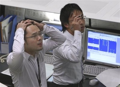 Japan's Nikkei stock average fell a staggering 9.60 percent. In Europe, Germany's benchmark DAX index was down 7.1 percent, France's CAC40 dropped 5.7 percent while Britain's FTSE 100 sank 6.8 percent after the government said its gross domestic product fell 0.5 percent in the third quarter, putting the country on the brink of recession. The dour outlook convinced investors that the world economy is headed for a severe downturn despite a raft of government rescue efforts aimed at pulling the financial system from the brink. It also indicated that the tremors caused by the global credit crisis may have only begun to be felt in their true scope and magnitude.