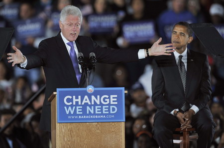 Updated: 2008-10-30 15:33 KISSIMMEE, Fla. -- Portraying harmony like never before, Bill Clinton hailed Barack Obama on Wednesday, a power pairing designed to inspire Democrats already smelling victory.