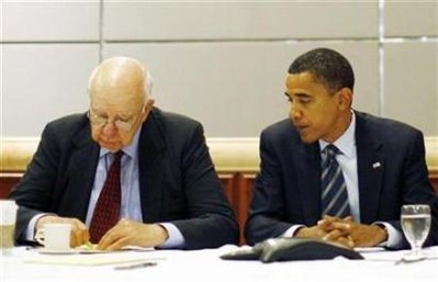 Updated: 2008-11-06 15:30 ![]() Democratic presidential candidate Senator Barack Obama attends a meeting with economic advisors, with former Chairman ot the Federal Reserve Paul Volcker, at the University of Miami, September 19, 2008. [Agencies]