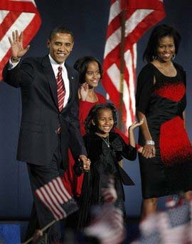 Updated: 2008-11-07 09:15 It was a mere fleeting image amid all the others that were beamed into our living rooms on that momentous election night: 7-year-old Sasha Obama in her black party dress, bounding gleefully up into her father's arms, each in turn planting a happy kiss on the other's cheek. But the heart-tugging moment was as poignant a reminder as any that a vigorous, appealing young family is entering the White House -- one that will bring a dramatically different energy and style to the presidency.
