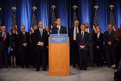 "Immediately after I become president I will confront this economic crisis head-on by taking all necessary steps to ease the credit crisis, help hardworking families, and restore growth and prosperity," Obama said at the press conference in Chicago after meeting with 17-member economic advisory team. "America is a strong and resilient country, I know we will succeed if we put aside partisanship and politics, and work as one nation," he said. Citing statistics, Obama warned the country is "facing the greatest economic challenge of our lifetime" with 240,000 jobs lost in October and nearly 1.2 million jobs cut this year, and tens of millions of families struggling to figure out how to pay the bills and stay in their homes. He noted that a rescue plan for the middle class tops all priorities that can create jobs and provide relief to families, and urged a stimulus package to be passed "sooner rather than later." Those which were also mentioned as priorities included further expansion of unemployment benefit and working out policy options to help auto industry adjust, "the backbone of American manufacturing and a critical part of our attempt to reduce our dependence on foreign oil." Obama said that he was also planning to review the implementation of the current financial program to ensure it is stabilizing financial markets, protecting taxpayers and helping homeowners. While addressing immediate economic challenges, the transitional government should move forward with long-term policies to "grow our middle class and strengthen our economy." "We cannot afford to wait on moving forward on the key priorities that I identified during the campaign, including clean energy, health care, education, and tax relief for middle-class families." When asked whether Obama would announce his cabinet members, he said that although the issue is equally as important as economy, he was not be so rushed on the decision and would roll out the list next week. On his first meeting with current president, George W. Bush, at the White House on Monday, Obama said that he was not going to anticipate problems but to seek partnership since the immediate priority is to make economy work. To add some humor to the first public appearance as the president-elect, Obama responded with a joke to a reporter's question about the dog the future first family is to bring to the White House. "With respect to the dog, this is a major issue. I think it has generated more interest on our website than just about anything," Obama said, adding that he was looking for a dog that is a hypoallergenic breed producing fewer allergic reactions, and from an animal shelter, where dog are often mixed-breeds. |
