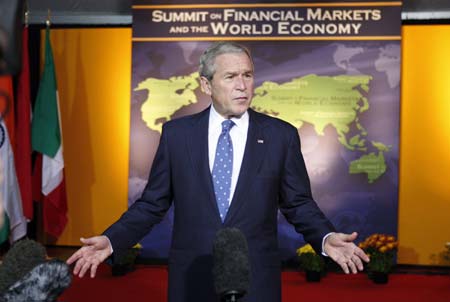 Signs are mounting of a painful economic slump in many parts of the world, with the euro zone slipping into recession according to data last week, unemployment climbing in the United States and elsewhere and emerging economies slowing. With US President George W. Bush only two months away from leaving the White House and his successor Barack Obama choosing to stay away from the Washington summit, talk of a top-to-bottom overhaul of global finance has been tempered. But leaders said they were close to agreeing on changes including more regulation for the world's financial industry -- where huge risk-taking on house prices, especially in the United States, backfired last year and triggered the downturn. Bush said summit leaders were looking for "a way forward to make sure that such a crisis is unlikely to occur again." "I am pleased that the leaders reaffirmed the principles behind open markets and free trade," he told reporters before the talks. "One of the dangers during a crisis such as this is that people will start implementing protectionist policies." "This crisis has not ended. There's some progress being made but there's still a lot more work to be done." Saturday's meeting is expected to pave the way for more work in coming months and another summit, perhaps in March, when a newly installed President Obama could consider potentially far-reaching changes to the financial system. As well as new regulation, leaders are considering ways to open up global institutions such as the International Monetary Fund to emerging economies whose export-funded reserve cashpiles have made them key economic players. The leaders are also likely to spell out what kind of measures their countries intend to take to blunt the bite of the economic downturn, such as more public spending. "DIFFICULT" TALKS British Prime Minister Brown said the approach of a period of low inflation created room for lower interest rates and fiscal stimulus measures. But he described the G20 financial crisis talks as "difficult." "These are tough talks because countries are coming from very different positions and we have to bring them together," Brown told reporters before heading to the talks. "It's obviously important to move people to decisions today about what can be done." Brown has been urging the G20 to act together to stimulate economic activity via fiscal and monetary policy means. "This is difficult for some countries," he said. "We're in an environment where there is very low inflation and therefore scope for action." Finance officials from the Group of 20 countries, comprising the world's biggest advanced and developing economies, worked late into the night on a summit communique to be put to the leaders at their summit and it stresses the need for better regulation, a German official said. "The communique will contain the principle that no financial market, nor actor on the financial markets and no region should be without regulation or supervision," the official said shortly before leaders were due to meet. The document also calls on hedge funds to provide more transparency about their operations, the official said. Emerging market countries have warned that time is running out to stem the economic damage from the credit market turmoil that began about 17 months ago. "If we don't take quick action we run the risk of falling into a depression," Brazilian Finance Minister Guido Mantega said on Friday, adding both regulatory reform and concerted government spending were needed. Montek Singh Ahluwalia, a top Indian economic policy-maker, piled on the pressure for developed countries to inject large amounts of government money into their economies. "If we are facing the most serious crisis in the world economy since the Great Depression then we need to take a lot of possibly unorthodox and special steps," he said. |