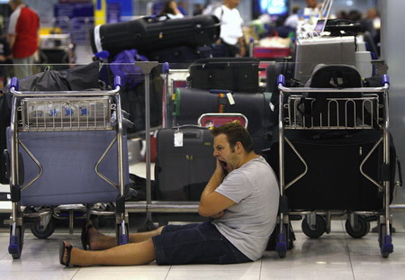 Christian Lund, 23, from Denmark, yawns as he waits inside Bangkok's Suvarnabhumi international airport after anti-government protesters blocked the main road November 25, 2008. Flights were cancelled at Thailand's main airport on Tuesday after anti-government protesters stormed the building, leaving thousands of travellers stranded and threatening the country's tourism industry. [Agencies]