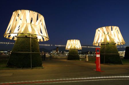 The installation titled "Abat-Jour" by Atelier Oe is pictured during the press preview of the "Geneva Trees and Lights" Festival in Geneva November 27, 2008. The exhibition will be open November 28, 2008 to January 4, 2009. This picture was taken with a long exposure. [Agencies]
