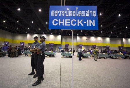 Channel 7 television said an M79 grenade was fired from a flyover near the domestic airport, which has been occupied by the People's Alliance for Democracy since last Thursday, part of the escalating campaign to topple the six-party ruling coalition. An emergency services official said 17 of the wounded in the blast, which occurred shortly after midnight, had already been discharged from hospital. Hundreds of red-shirted government supporters surrounded the Constitutional Court in Bangkok on Tuesday, forcing the vote fraud case hearing to be moved to another venue. The final hearing in the case was now due to start at 10 am (0300 GMT) at Bangkok's Administrative Court. The Constitutional Court has moved with uncharacteristic speed to wrap up a case that could dissolve the elected government. Its ruling could come as early as Wednesday. The court is widely expected to order the disbanding of Prime Minister Somchai Wongsawat's People Power Party (PPP) and two coalition partners. If it does, Somchai and other leaders would be barred from politics and many cabinet ministers would have to step down. The PPP's dissolution, however, will not necessarily mean a snap election as many MPs will simply switch to a new "shell" party. The yellow-shirted demonstrators are trying to topple Somchai, whom they accuse of being a pawn for his brother-in-law, former premier Thaksin Shinawatra. Thaksin was ousted in a 2006 coup and is now in exile. Somchai insisted on Monday he would not go. "I will not quit and I will not dissolve parliament," he told reporters in the northern city of Chiang Mai. The PAD protesters were due to end a three-month occupation of the prime minister's office on Tuesday to consolidate their grip on the international airport, which has been blockaded for a week, adding to the pain of a tourist- and export-dependent economy already suffering from the global financial crisis. Finance Minister Suchart Thada-Thamrongvech told Reuters on Monday the economy might be flat next year, or grow by just 1-2 percent, after earlier growth forecasts of between 4-5 percent. Thailand's Board of Trade director said the cost of the airport closures was "incalculable", but a senior board member offered a figure, telling the Nation newspaper lost export earnings ran at around 3 billion baht ($85 million) a day. The air cargo industry has ground to a halt, while the city's main domestic hub, Don Muang, has also been occupied for five days. Rating agency S&P cut Thailand's outlook to negative from stable, saying there was a possibility of widespread violence. The chaos has worried Thailand's neighbours, due to meet in the country in two weeks for a regional summit. The Thai cabinet is expected to approve a delay to March at their Tuesday meeting. |