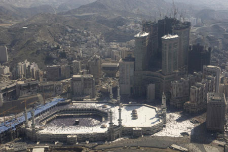 A view of Muslim pilgrims praying at the Grand Mosque in Mecca December 9, 2008. [Agencies]