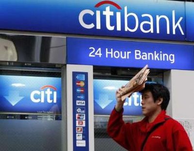 A man walks past a Citibank branch in Tokyo November 24, 2008. The US government agreed to inject $20 billion of new capital into one of the world's biggest banks, Citigroup Inc, to avoid a collapse that could have wrought financial havoc around the globe. [Agencies]