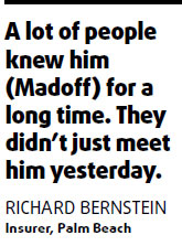Updated: 2008-12-19 08:01 To get accepted as a member at the Palm Beach Country Club - founded by Jews during the 1950s when the other clubs in this exclusive resort town were restricted - you have to be more than rich. You have to be a real mensch, a person of character. And the way to prove that is to show that you contribute a fortune every year to charity. Bernard Madoff passed that test long ago, something his fellow members have suddenly come to regret. Prosecutors say Madoff preyed on club members, scamming them for millions of dollars and betraying the trust that is so valued inside the walls of the exclusive club.