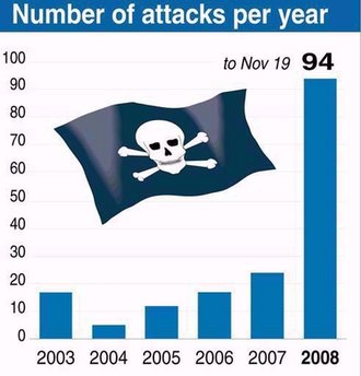 A chart showing the number of pirate attacks per year since 2003. [Agencies]