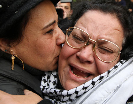 ![]() Palestinian supporters of Hamas cries as they take part in a demonstration against Israeli air strikes in the Gaza Strip at al-Yarmouk Camp near Damascus December 27,2008. Israeli air strikes in the Gaza Strip on Saturday killed more than 230 people and wounded 400 others. [Agencies] |