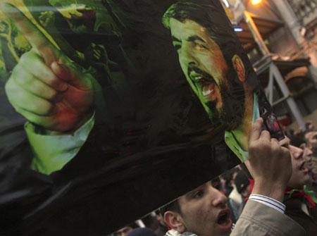 A demonstrator holds a portrait of Hamas leader Khaled Meshaal during a demonstration against Israeli air strikes in the Gaza Strip, in Istanbul December 27, 2008. Israeli warplanes and helicopters pounded the Hamas-ruled Gaza Strip on Saturday, killing at least 230 people in the bloodiest one-day death toll in 60 years of conflict with the Palestinians. [Agencies]