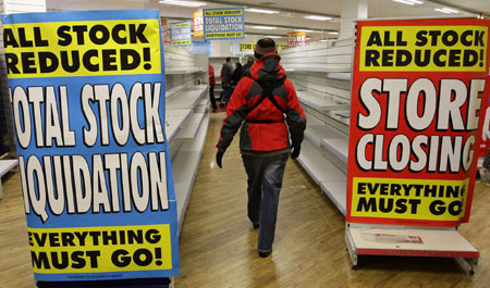 Updated: 2008-12-28 16:12 ![]() A woman walks past empty shelves at the Woolworths store in Nuneaton, central England December 27, 2008. Administrators began closing the stores of Woolworths, one of Britain's best known retailers, on Saturday. The household name, which sold everything from chocolate bars to toasters and televisions, is the highest profile retail casualty of the global financial crisis and Britain's economic downturn. Woolworths collapsed into administration in November and its administrators said earlier this month all its stores would close by January 5, with the loss of 27,000 jobs, unless a last-minute buyer could be found. [Agencies] |