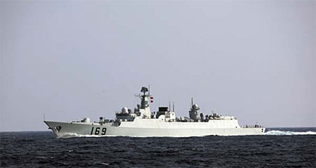 Chinese naval destroyer 169 "Wuhan" is seen in this picture taken on January 1, 2009 on its way to the Gulf of Aden for the mission to fight pirates. All the three naval vessels of the fleet held flag-raising ceremonies on the first day of 2009. [chinanews.com]