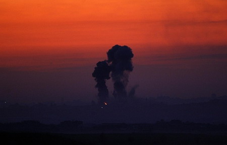 Smoke rises during an Israeli air strike on the northern Gaza Strip January 3, 2009. Israeli artillery shelled the Gaza Strip on Saturday, stepping up the offensive against Hamas militants in the Palestinian enclave as tanks and troops waited on the border for a possible ground offensive. Earlier in the day Israel bombed Gaza from the air and sea, killing a senior Hamas commander. Hamas meanwhile kept up its rocket attacks on southern Israeli towns in defiance of international calls for it to cease such actions. [Agencies]