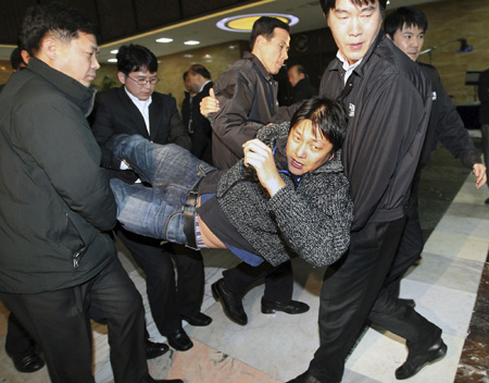 However, about 20 aides and staffers of another opposition party the Democratic Labor Party refusing to end their sit-in at the entrance were frog-marched out of the building by security officials, South Korea's Yonhap News Agency reported. The opposition parties blocked the assembly in protest against the ruling Grand National Party (GNP)'s attempt to approve some 80 bills, including a disputed free trade pact with the US, before the current session that ends Thursday. The GNP currently controls 172 out of a total of 298 seats at the assembly. The bills initiated by the ruling party and government could be passed easily despite opposition party's boycott. During the past 10 days, violent conflicts occurred at the assembly when security guards trying to drive off the opposition party lawmakers, leaving 53 guards and one opposition party lawmaker injured. |