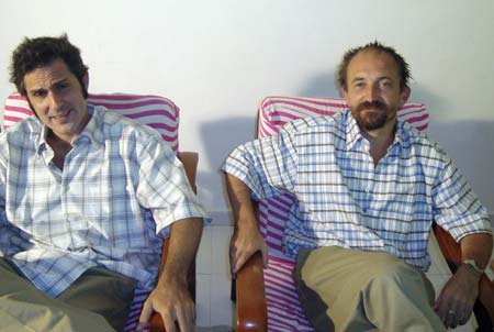 Jose Cendon (L) and Colin Freeman sit at their hotel in Bosasso, January 4, 2009. Somali kidnappers have freed two journalists, British correspondent Freeman and Spanish photographer Cendon, a government official said on Sunday. [Agencies]