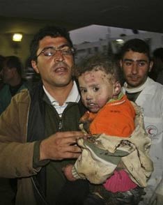That effectively cut off Gaza City, the territory's largest population center with some 400,000 residents, from the rest of Gaza to the south. Israel's military chief said Hamas fighters were trying to draw soldiers deeper into Gaza's sprawling, densely packed urban areas, where the military said militants were shielding themselves behind civilians. "You entered like rats," Hamas spokesman Ismail Radwan told Israeli soldiers in a statement on Hamas' Al Aqsa TV. "Gaza will be a graveyard for you, God willing," he said. Israeli forces have not yet entered urban areas, said Brig. Gen. Avi Benayahu, the chief army spokesman. He warned, however, that the operation was not a "school trip" and would be long and demanding. The ground invasion risks turning into intense urban combat, with house-to-house fighting, sniper fire and booby-traps. Hamas is believed to have some 20,000 gunmen and has had time to prepare. To guard against hidden explosives, Israel's ground forces moved through fields and orchards with bomb-sniffing dogs. Since the ground assault began, 64 Palestinian civilians have been killed, said Dr. Moaiya Hassanain, a Health Ministry official. The new deaths brought the death toll in the Gaza Strip to more than 512 since Dec. 27. Five Israelis have been killed since the offensive began. One soldier has been killed in the ground operation and about 40 were wounded, some of them in heavy exchanges of fire near the militant stronghold of Jebaliya, a town on Gaza City's northern outskirts, the army said. Heavy Israeli casualties could undermine what has so far been overwhelming public support for the operation. |