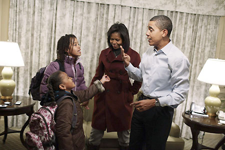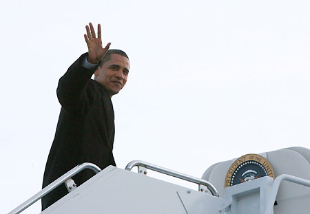 But after his sentimental farewell to their home, Obama headed to the airport to fly to Washington and join his wife Michelle and daughters Malia and Sasha, 7. They arrived in Washington on Saturday to settle in to a hotel without the media entourage that follows Obama everywhere. Malia and Sasha start school on Monday. Asked if he was excited about the move, Obama alluded to the grueling presidential campaign when he said: "Yeah, although living in a hotel for two weeks -- we kind of did that for two years." The Obamas will stay at the luxury Hay Adams Hotel across a park from the White House until January 15 when they move into Blair House, which serves as the official guest house and residence for presidents elect for several days before the inauguration. Obama was already beginning to experience what it will be like to be a US president. He traveled aboard the military aircraft often used to fly Vice President Dick Cheney around. Although the airplane was not called Air Force One because Obama is not yet president, it had all the trappings of the real thing: the presidential seal at the front of the plane, name cards with the presidential seal and cups and plates emblazoned with "Air Force One." |