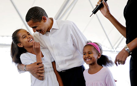 Things may get easier for the girls once they have the protection afforded by the White House. They were no stranger to the spotlight before their father's election. Here they are with their father on the campaign trail in Fort Wayne, Indiana on Sunday, May 4, 2008.[Agencies]