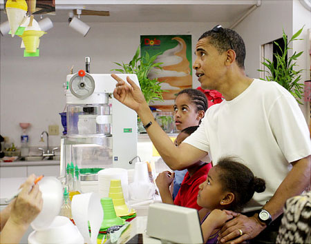 Obama reported for dad-in-chief duty over the holidays, spending time with his two daughters while vacationing in Hawaii. Above, the US president-elect took his girls out to shaved ice at Kokonuts Shave Ice and Snacks. The Obamas have worked hard to keep life as normal as possible for their daughters, but it's hard keeping the adorable future first kids out of the spotlight.[Agencies]