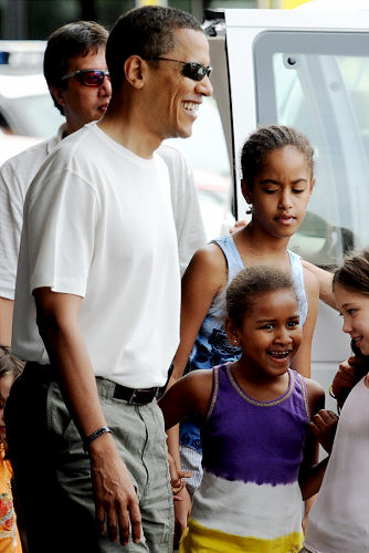 Barack takes the girls out for a father-daughter lunch at a local shopping mall in Honolulu, the day after Christmas.[Agencies]