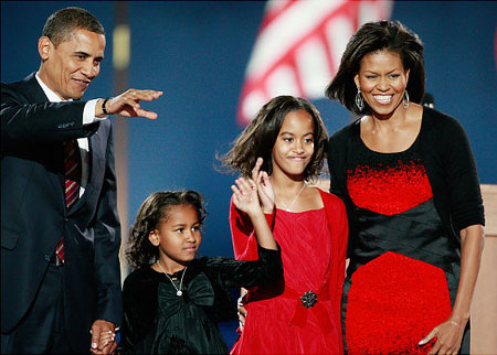 The whole family stands together on election night--looking fabulous in their coordinating outfits.[Agencies]