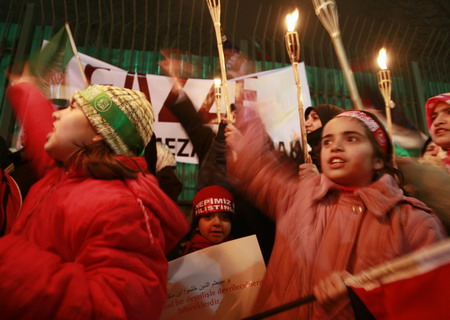 Israeli airstrikes killed 29 Palestinians on Wednesday after leaflets were dropped warning residents to leave the area "because Hamas uses your houses to hide and smuggle military weapons." The casualties brought the total Palestinian death toll during Israel's 12-day assault to 688 and drove home the complexities of finding a diplomatic endgame for Israel's Gaza invasion. Ten Israelis have been killed, including three civilians, since the offensive began Dec. 27. More than 5,000 people have fled the border area, seeking refuge at two UN schools turned into temporary shelters. The fury of the renewed fighting made it appear each side was scrambling to get in as many hits as possible before a truce could materialize. "I feel like the ground is shaking when we hear the shelling. People are terrified," said Fida Kishta, a resident of the Gaza-Egypt border area where Israeli planes destroyed 16 empty houses. |