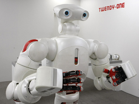 Twendy-One, a robot designed to help elderly and disabled people around the house, is put through its paces at Waseda University in Tokyo January 8, 2009. Twendy-one was designed by robotics researchers at Waseda University to have human-sized four-fingered hands cabable of picking up and holding delicate objects without crushing them. [Agencies]