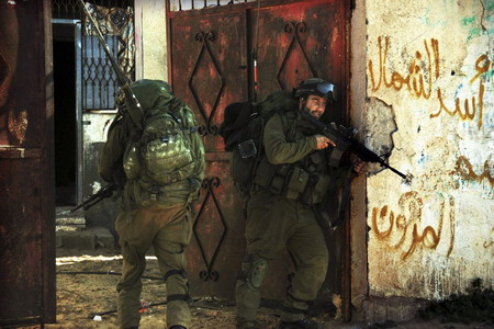 An Israeli soldier takes position during Israel's offensive in the Gaza Strip January 8, 2009, in this picture released by Israel's Defence Forces (IDF). Israel is bent on halting Hamas rocket fire on its southern towns. Prime Minister Ehud Olmert said the goal that "quiet will reign supreme" in the area had not been achieved. A decision on further military action "is still ahead of us", he said. More than a dozen rockets hit southern Israel on Thursday. [Agencies]