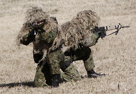 Members of Japan's Ground Self-Defense Force 1st Airborne Brigade take part in an annual new year military exercise in Narashino, east of Tokyo, January 11, 2009. Some 400 troops and 19 aircraft took part in the exercise. [Agencies]