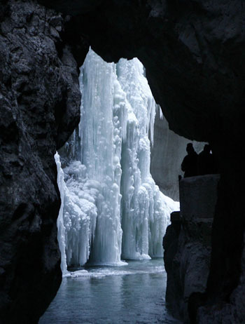 Tourists visit the frozen waterfalls at the famous Partnach Gorge (Partnachklamm) in the Bavarian resort of Garmisch-Partenkirchen, January 12, 2009. About 200,000 visitors make a walk through the gorge every year. [Agencies]