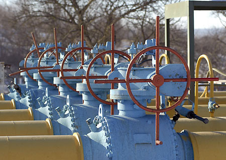 General view of the gas station near the border between Ukraine and Poland in the settlement of Drozdovychi, 120 km (75 miles) west of Lviv, January 12, 2009. Russia, Ukraine and the European Union have now all added their signatures to a gas monitoring agreement aimed at restarting blocked gas transit to Europe via Ukraine. [Agencies]