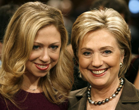 Hillary Clinton stands with her daughter Chelsea as she prepares to testify before the Senate Foreign Relations Committee during her confirmation hearing on Capitol Hill in Washington to become the next US Secretary of State, January 13, 2009. [Agencies]
