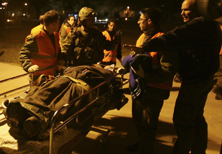An Israeli soldier, wounded during Israel's offensive in Gaza, is wheeled into Soroka hospital in the southern city of Beersheba January 14, 2009. Ceasefire negotiations intensified on Wednesday as Israeli forces kept up the pressure on Hamas Islamists in the Gaza Strip, where the Palestinian death toll rose above 1,000 after 19 days of air and ground attacks. [Agencies]