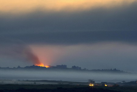 Smoke billows from a burning building in the northern Gaza Strip January 15, 2009. Israel killed a senior Hamas leader in an air strike on Thursday after unleashing its heaviest shelling of Gaza neighbourhoods in what might be a final push against the Islamist group before a ceasefire. [Agencies]