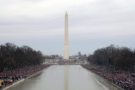 Crowds gather on the Mall looking toward the Washington Monument for the "We Are One" Inaugural Celebration at the Lincoln Memorial in Washington January 18, 2009. [Agencies]