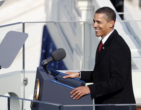 "Our time of standing pat, of protecting narrow interests and putting off unpleasant decisions, that time has surely passed," Obama said in an undisguised shot at Bush administration policies. "Starting today, we must pick ourselves up, dust ourselves off and begin the work of remaking America." The dawn of the new Democratic era, with Obama allies in charge of both houses of Congress, ends eight years of Republican control of the White House by Bush, who leaves Washington as one of the nation's most unpopular and divisive presidents, the architect of two unfinished wars and the man in charge at a time of economic calamity that swept away many Americans' jobs, savings and homes. Obama's election was cheered around the world as a sign that America will be more embracing, more open to change. "To the Muslim world," Obama said, "we seek a new way forward, based on mutual interest and mutual respect." Still, he bluntly warned, "To those leaders around the globe who seek to sow conflict, or blame their society's ills on the West, know that your people will judge you on what you can build, not what you destroy." "To those who cling to power through corruption and deceit and the silencing of dissent, know that you are on the wrong side of history, but that we will extend a hand if you are willing to unclench your fist." Two years after beginning his improbable quest as a little-known, first-term Illinois senator with a foreign-sounding name, Obama moved into the Oval Office as the nation's fourth youngest president, at 47, and the first African-American, a barrier-breaking achievement believed impossible by generations of minorities. He said it was a moment to recall "that all are equal, all are free and all deserve a chance to pursue their full measure of happiness." Obama called for a political truce in Washington to end "the petty grievances and false promises, the recriminations and worn-out dogmas, that for far too long have strangled our politics." He said that all Americans have roles in rebuilding the nation by renewing the traditions of hard work, honesty and fair play, tolerance, loyalty and patriotism. "What is required of us now is a new era of responsibility, a recognition, on the part of every American, that we have duties to ourselves, our nation and the world, duties that we do not grudgingly accept but rather seize gladly, firm in the knowledge that there is nothing so satisfying to the spirit, so defining of our character, than giving our all to a difficult task." |