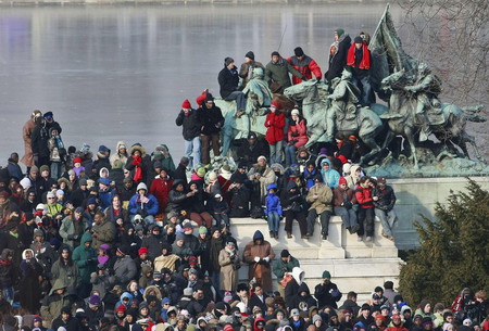 In his remarks, Obama took stock of the nation's sobering problems. "That we are in the midst of crisis is now well understood," he said. "Our nation is at war, against a far-reaching network of violence and hatred. Our economy is badly weakened, a consequence of greed and irresponsibility on the part of some, but also our collective failure to make hard choices and prepare the nation for a new age," Obama said. "Homes have been lost, jobs shed, businesses shuttered. Our health care is too costly, our schools fail too many, and each day brings further evidence that the ways we use energy strengthen our adversaries and threaten our planet." It was the first change of administrations since the terror attacks of Sept. 11, 2001. Crowds filled the Mall for a distant glimpse of the proceedings or just, in the words of many, simply "to be here." Washington's subway system was jammed and two downtown stations were closed when a woman was struck by a subway train. Bush, following tradition, left a note for Obama in the top drawer of his desk in the Oval Office. White House press secretary Dana Perino said the theme of the message, which Bush wrote on Monday, was similar to what he has said since election night: that Obama is about to begin a "fabulous new chapter" in the United States, and that he wishes him well. The unfinished business of the Bush administration thrusts an enormous burden onto the new administration, though polls show Americans are confident Obama is on track to succeed. He has cautioned that improvements will take time and that things will get worse before they get better. Culminating four days of celebration, the nation's 56th inauguration day began for Obama and Vice President-elect Joe Biden with a traditional morning worship service at St. John's Episcopal Church, across Lafayette Park from the White House. Bells pealed from the historic church's tower as Obama and his wife, Michelle, arrived five minutes behind schedule. The festivities won't end until well after midnight, with dancing and partying at 10 inaugural balls. By custom, Obama and his wife, and Biden and his wife, Jill, went directly from church to the White House for coffee with Bush and his wife, Laura. Michelle Obama brought a gift for the outgoing first lady in a white box decorated with a red ribbon. Shortly before 11 a.m., Obama and Bush climbed into a heavily armored Cadillac limousine to share a ride to the Capitol for the transfer of power, an event flashed around the world in television and radio broadcasts, podcasts and Internet streaming. On Monday, Vice President Dick Cheney pulled a muscle in his back, leaving him in a wheelchair for the inauguration. Just after noon, Obama stepped forward on the West Front of the Capitol to lay his left hand on the same Bible that President Abraham Lincoln used at his first inauguration in 1861. The 35-word oath of office, administered by Chief Justice John Roberts, has been uttered by every president since George Washington. Obama was one of 22 Democratic senators to vote against Roberts' confirmation to the Supreme Court in 2005. The son of a white, Kansas-born mother and a black, Kenya-born father, Obama decided to use his full name in the swearing-in ceremony. |