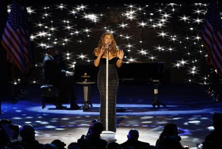 Singer Mariah Carey performs during the Neighborhood Inaugural Ball in Washington January 20, 2009. Barack Obama took power as the first black US president on Tuesday and quickly turned the page on the Bush years, urging Americans to rally to end the worst economic crisis in generations and repair the US image abroad. [Agencies]