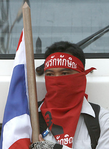 A supporter of former Prime Minister Thaksin Shinawatra holds a Thai flag during a protest against the government outside Parliament in Bangkok December 29, 2008. [Agencies]