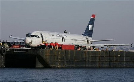 Investigators want to closely inspect the engine once it is pulled from the water to better understand if it conked out after hitting birds Thursday. Police have already located several pieces of debris from the flight, including 35 flotation seat cushions, 12 life jackets, 15 pieces of luggage, two briefcases, 11 purses, 15 suit jackets and shirts, four shoes, and two hats, according to NYPD spokesman Paul Browne. The plane's right engine is still attached to the body of the plane. The developments came as hero pilot Chesley "Sully" Sullenberger attended Barack Obama's inauguration. All Sullenberger would say is, "I'm not allowed to say anything." Two days before the emergency landing, the same plane experienced a compressor stall while in flight. Passengers aboard the flight that left LaGuardia Airport on Jan. 13 reported hearing loud bangs from the right side of the plane. A short time later the situation appeared to return to normal and the flight continued on to Charlotte, N.C. The compressor is essentially a fan that draws air into the engine and helps create thrust for the jet. A compressor stall is a situation of abnormal airflow resulting from a stall of the blades within the compressor. Compressor stalls can vary in severity from a momentary engine power drop to a complete loss of compression requiring a reduction in the fuel flow to the engine. The stall will no doubt be looked at as the investigation moves forward, but pilots and aviation experts doubt the malfunction made the plane more vulnerable to the bird strikes that are believed to have imperiled the Airbus A320. Retired Delta Air Lines pilot Joe Mazzone, who has flown planes that had compressor stalls, said he doesn't believe a compressor stall could have created or added to the total engine failure vis-a-vis a bird strike. "If you have a big Canadian goose ingested in those engines, I would bet the farm that's what caused the engines to quit," Mazzone said. "The compressor stall would be a totally different issue unrelated to those birds." |