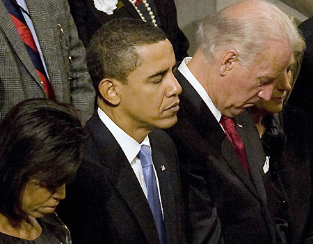 US President Barack Obama attends the National Prayer Service at the National Cathedral in Washington on his first official day as president, January 21, 2009.  [Agencies]