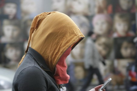 A masked demonstrator uses his mobile phone at a protest in Reykjavik January 25, 2009. Iceland's Minister of Commerce quit on Sunday, calling into question the government's ability to rule until an early election in May and tackle the country's economic collapse. Commerce Minister Bjorgvin Sigurdsson said he was resigning because of his role in the collapse that has prompted protesters to call for the government's immediate resignation. [Agencies]