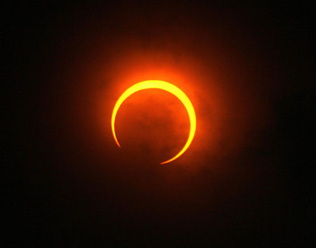 The Moon passes between the Sun and the Earth during an annular solar eclipse as seen from Bandar Lampung, Indonesia Lampung province January 26, 2009. Taken with Solar filter on a lens.[Agencies]