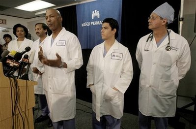 Doctors described the six boys and two girls as a feisty bunch who made their entrance kicking and crying and seemed to be doing remarkably well, despite arriving nine weeks premature. They ranged in weight from 1 pound, 8 ounces, to 3 pounds, 4 ounces. "We were fortunate that this patient was extremely strong, very courageous and able to handle these births," said Dr. Karen E. Maples, who is chief of service for obstetrics and gynecology at Kaiser Permanente Bellflower Medical Center and delivered Baby No. 8. No pictures of the children were released, and at the mother's request doctors declined to reveal her name, any information about her family or whether she took fertility drugs before becoming pregnant, though outside experts said it is almost certain she did. The chances of delivering eight babies naturally are "unbelievably rare," said Dr. Richard Paulson, director of the fertility program at the University of Southern California. The babies have not been named yet, and the staff assigned them letters A through H in the meantime. They were expected to remain hospitalized for several weeks and could face serious developmental problems later on because of their small size. "They are doing amazingly well at this time," said Dr. Mandhir Gupta, a neonatologist who was part of the team of 46 doctors, nurses and others who took part in the cesarean section delivery. But he added: "I won't be able to comment on chances of survival because we've never had eight babies born at 30 weeks before." The odds of survival drop off dramatically in multiple births, particularly if there are more than three babies. The risks include breathing and eating difficulties and growth problems because their lungs and other systems are often underdeveloped. They also may have hearing or vision problems and learning disabilities as they mature. In fact, the risks in multiple births are so high that when a woman is pregnant with more than three babies, doctors routinely recommend "selective reduction," or aborting some of them. But Dr. Harold M. Henry, director of maternal-fetal medicine for the hospital, would not discuss what took place in this case. The babies were still in incubators and their mother had not been able to hold them yet. Three had oxygen tubes up their noses to help them breathe. The first four were expected to begin taking milk sometime Tuesday, with the others shortly after that. "That's the biggest test," Gupta said. "We want to make sure that they start tolerating and digesting the milk." The woman and her doctors were actually expecting seven children, not eight. The delivery team was thinking the hard work was over after that seventh baby was removed from the womb, when another physician spotted another little hand, Maples said. The mother reacted calmly to the news, said Dr. Jalil Riazi, an anesthesiologist. "Her question was, 'Really, an eighth baby? How did we miss that baby?'" he said. The mother had checked into the hospital in her 23rd week and spent nearly two months working with doctors in preparation for the big day. Mainly she got a lot of bed rest, Maples said, while the medical team repeatedly conducted practice sessions. As word of the births spread people began to call with offers of cribs, strollers, baby clothes and other items, said hospital spokeswoman Carmen Gonzalez. "We're compiling a list of things that people want to donate," she said, adding the mother will review the list and decide what she needs. The world's first live octuplets were born in 1967 in Mexico City, but all died within 14 hours, according to Encyclopedia Britannica. The United States' first live octuplets were born in Houston in 1998, three months premature. The tiniest died a week after the birth. The surviving siblings turned 10 in December and were reported to be doing well by their mother. "It's wonderful watching them be together. They are happy to have each other. They're doing their homework right now," Nkem Chukwu said Monday. |